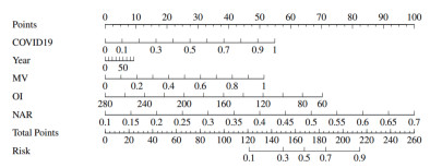 | 图 1 CCI的预测模型列线图 Fig 1 Nomogram model for prediction of chronic critical illness in patients with Severe Pneumonia |