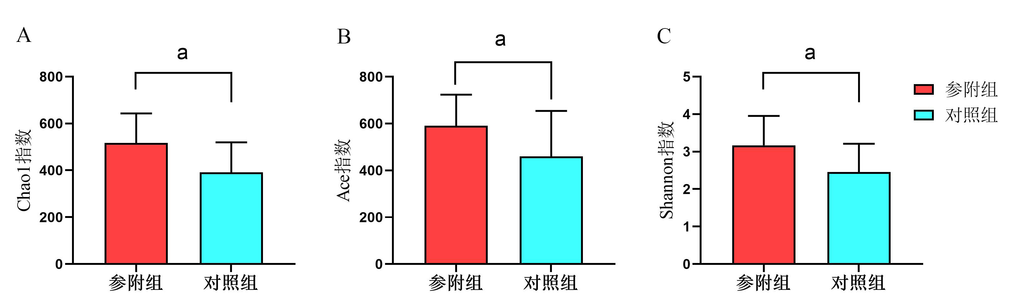 | Chao1指数a | 387.26±75.45 | 367.93±98.09 | 0.605 | 0.550 |