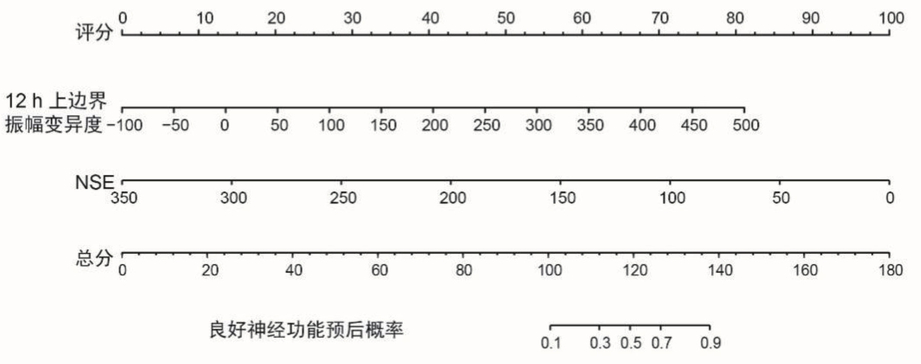 基于12 h aEEG上边界振幅变异度联合NSE指标构建列线图模型,见图 1。