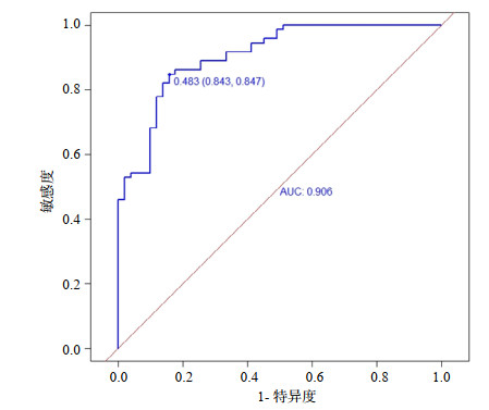 图 2 列线图模型的ROC曲线 Fig 2 The ROC curve of the nomogram model