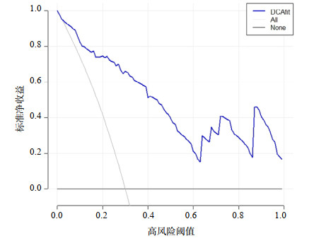 图 4 列线图模型的决策曲线分析 Fig 4 Decision curve analysis of nomogram model