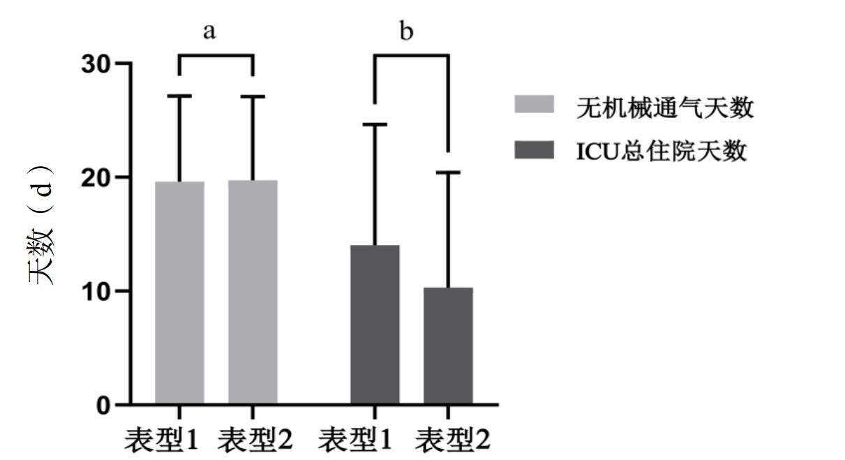 注:aP > 0.05,bP < 0.05 图 3 不同ARDS亚表型患者的28 d无机械通气天数和ICU总住院时间 Fig 3 Ventilator-free days and ICU length of stay across ARDS subphenotypes