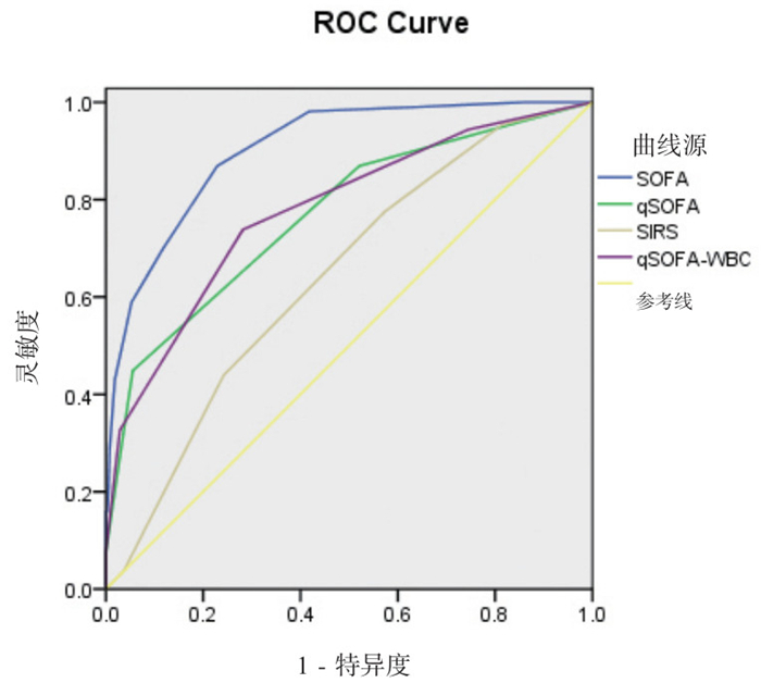 急诊室是医院收治患者的前沿窗口,收治的患者包括各种部位的感染。重症感染可导致危及生命的器官功能障碍[1-2]。在繁忙的急诊室,非特异的临床表现往往导致病情被低估。寻找对急诊室感染患者早期诊断、病情评估的有效评分系统[3],有助于急诊室医生采取有效及时合理的治疗,改善患者的预后[4-5]。合适的评分系统一方面不能将预后不良的严重感染在急门诊漏诊,即需要评价指标的灵敏度高;另一方面应是简单易操作,并且不能太过宽松即特异度不能太低。本研究的意义在于将白细胞异常纳入qSOFA评分,构成qSOFA-WBC评分系统;将其于SOFA评分、qSOFA评分、SIRS标准进行对比,探讨它们对急诊感染患者预后的预测作用。