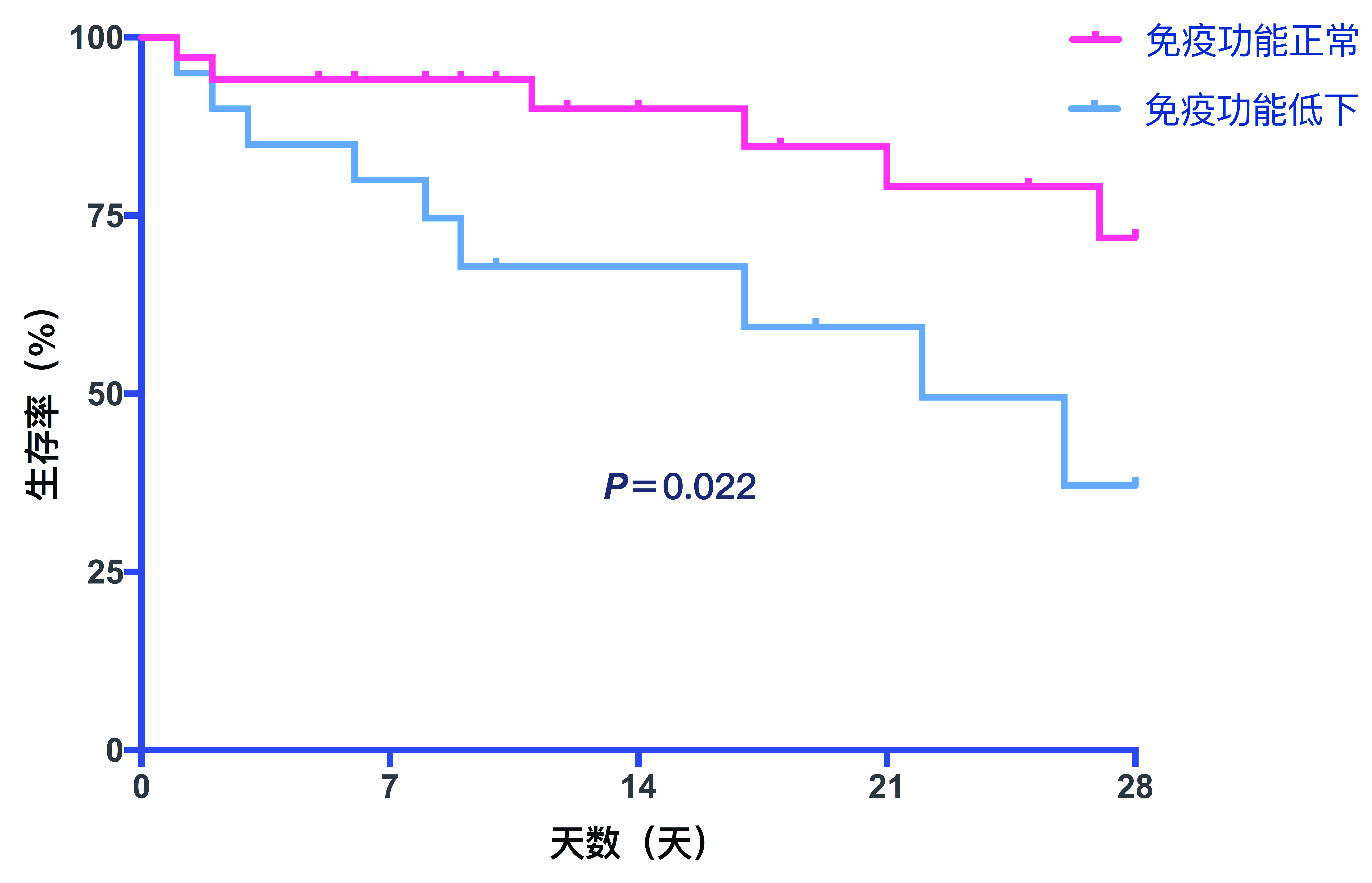 图 1 免疫功能低下与非免疫功能低下的PARDS患者生存分析 Figure 1 Survival analysis of PARDS patients with or without immunocompromise