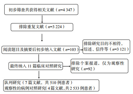 | 图 1 文献检索及筛选纳入流程 Figure 1 Flow chart of the selection process for identifying eligible studies |