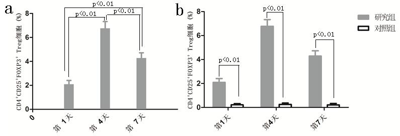 全波长酶标仪(美国Thermo公司),紫外分光光度仪(美国Thermo公司), IL-10、IL-4、IL-17、INF-γ及TGF-β等酶联免疫吸附试验(ELISA)试剂盒均购自武汉博士德公司产品。CD4、CD25、FOXP3等抗体均购于BD Biosciences。