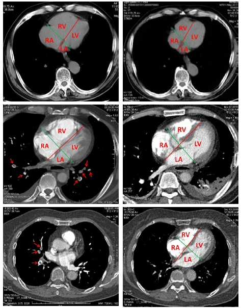 Key words: Tomography, X-ray computed     Acute     Pulmonary embolism     Embolism index     Right ventricle     Left ventricle     Right atrium     Left atrium     Measurement