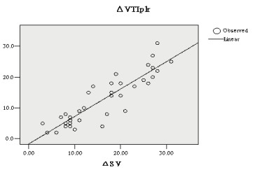 r=0.888, p < 0.01 图 1 ΔVTIplr与ΔSV的相关分析 Fig 1 correlation between the patients' ΔVTIplr and ΔSV