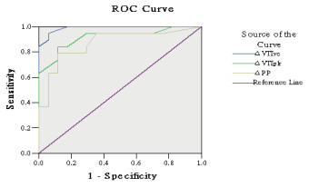 Abstract: Objective To evaluate the feasibility of using noninvasive ultrasonic cardiac output monitor USCOM velocity time integral (VTI) as the observation index of PLR. Methods This prospective study recruited 36 septic shock or acute pancreatitis patients from October 2014 to October 2016 in the resuscitation room and EICU of Peking Union Medical College Hospital. The change of VTI and plus pressure before and after PLR (ΔVTIplr and ΔPP), and the change of VTI and stroke volume before and after 500 mL of volume expansion (ΔVTIve and ΔSV) were recorded. Fluid response positive was defined as stroke volume increase more than 15% after volume expansion. Results ΔVTIplr was positively correlated with ΔSV (Spearman correlation coefficient r=0.888, P < 0.01). The predicting value of ΔVTIve, ΔVTIplr and ΔPP in fluid response were as follows: the sensitivity of ΔVTIve in > 15% was 94.7%, the specificity was 94.1%, area under the ROC curve was 0.989; the sensitivity of Δ VTIplr in > 12% was 84.2%, the specificity was 88.2%, area under the ROC curve was 0.916; and the sensitivity of Δ PP in > 10.5% was 78.9%, the specificity was 88.2%, the area under the ROC curve was 0.870. Conclusions Δ VTIplr measured by USCOM before and after the PLR is a sensitive and specific index. It is better than the classic index Δ PP. Δ VTIplr measured by USCOM is completely noninvasive, which has very good application prospect in the emergency department.