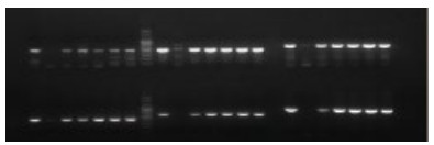 图 1 电泳图(SP-A1等位基因经PCR扩增后在1%琼脂糖凝胶电泳上的表达) Fig 1 Electropherogram(expression of SP-A1 allele on 1% agarose gel electrophoresis after PCR amplification)