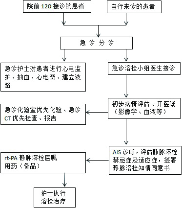 1.2 研究方法 1.2.1 组建急诊溶栓小组根据本院实际情况,组建秦皇岛第一医院急诊科“急诊溶栓小组”,小组成员均有神经病学专业教育基础(硕士)、系统接受中国卒中学会培训的内科主治医师。急诊溶栓小组实施24 h值班制,在承担急诊日常诊治工作的同时兼顾AIS的诊断及rt-PA静脉内溶栓治疗。