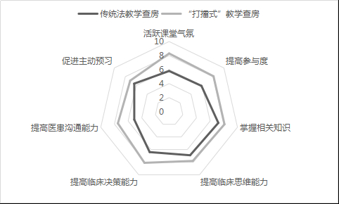 临床思维的培养对医学学员今后的临床工作将起到决定性作用[7-8]。住院医师认为“打擂式”教学查房更能提高临床思维能力。传统模式教学查房也注重临床思维能力的培养,但可能老师教授过多,学员参与不足,导致住院医师对临床思维印象不深,或者部分学员未能认真听讲。“打擂式”教学查房时,住院医师在“思考—讨论—辩论—老师点评”这种模式下,易对临床思维形成较深刻的印象; 另外因为参与度明显改善,注意力相对集中,避免了未能认真听讲的情况。