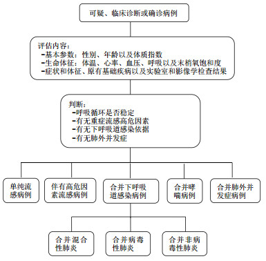 主要依据流行病学、临床表现和病原学检查结果。流行病学[13, 66]是指发病前7 d内病例曾到过流感爆发疫区;或与确诊(或疑似)流感病例共同生活或有密切接触史;或有与禽类动物接触史;或曾到过活禽市场。