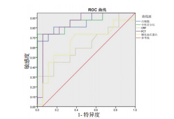 表 2 早期诊断肝脓肿所致脓毒症的生物标志物的ROC曲线 Table 2 Receiver operating characteristic curve of early diagnostic biomarkers to sepsis caused by pyogenic liver abscess