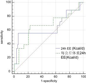 | 每千克体质量24 h EE | 27.6 kcal/(kg·d) | 80.0 | 45.4 | 0.646 | 0.560~0.725 | 0.021 |