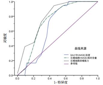 图 2 BALF中HMGB1浓度、巨噬细胞HMGB1相对蛋白含量及吞噬能力预测患者7 d内机械通气撤机拔管的ROC曲线