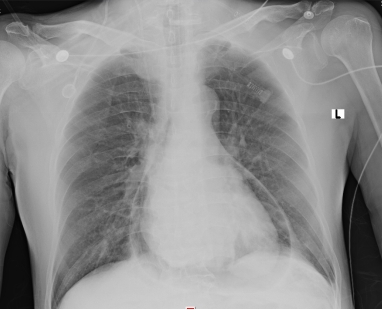 治疗上,少量心包积气是自限性疾病,不需要任何特定的治疗,主要针对病因保守治疗,高浓度的氧疗对空气的吸收是有用的。有症状心包积气同时伴有血流动力学不稳定的情况下,最有效的办法是心包穿刺置管闭式引流术。经治疗后该患者血流动力学稳定,复查心电图ST段下移,胸闷伴呼吸困难症状明显改善,但由于患者主要病因是右肺门鳞癌侵犯右主支气管造成支气管破裂,针对破口治疗方案有限,告知患者家属后拒绝继续治疗,要求出院。